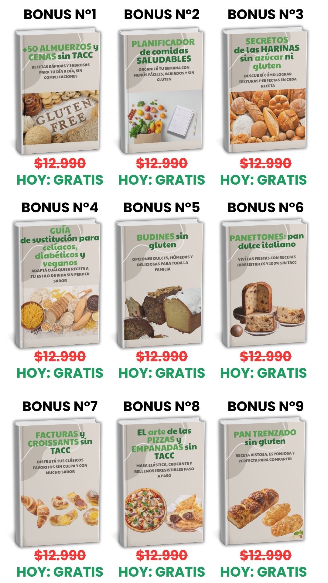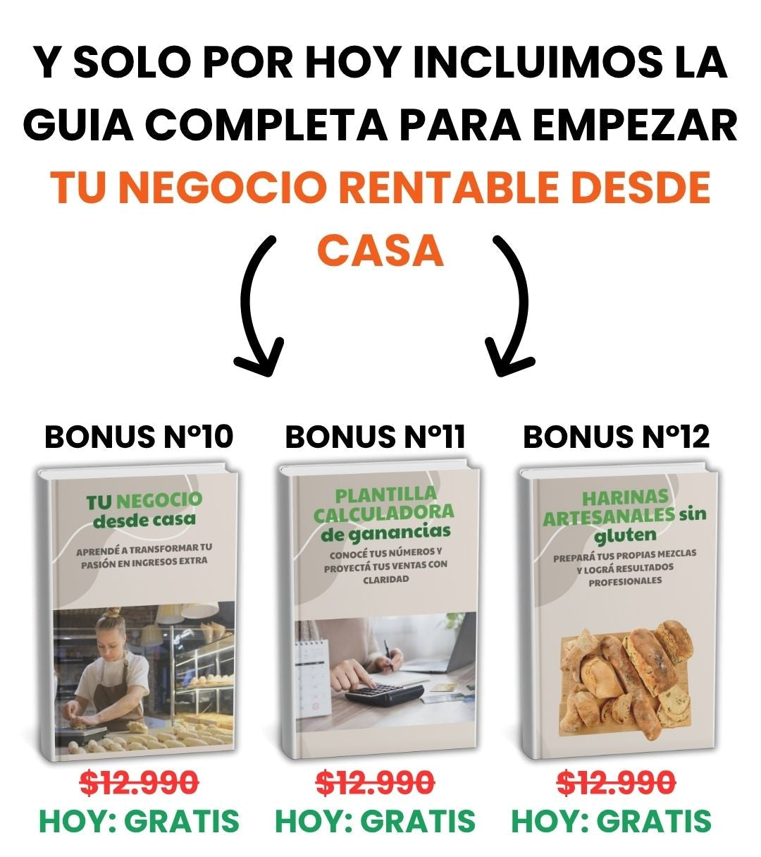 Sí. Recibís 12 bonos exclusivos y una sorpresa (harinas, sustituciones, planificador, pizzas/empanadas, y más) para mejorar tus resultados.